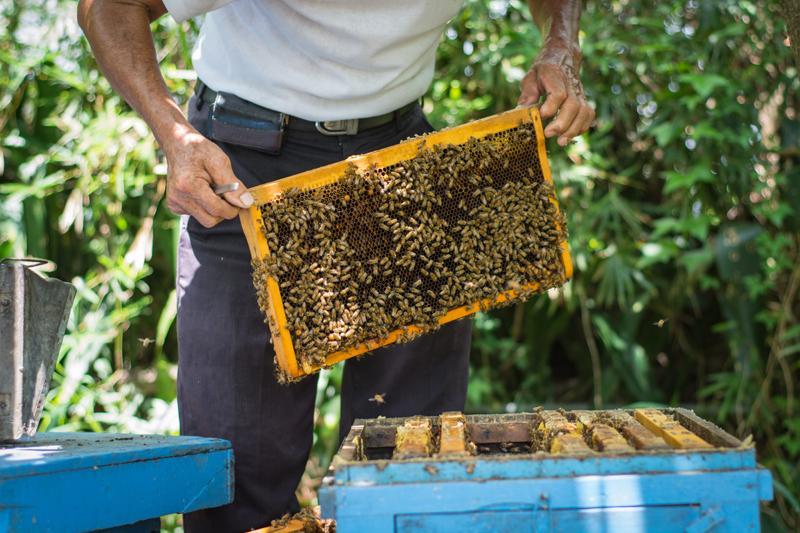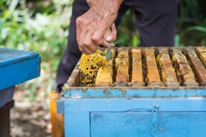 春天時,柚子花盛開,空氣中瀰漫著淡淡的柚花香,蜜蜂們穿梭其間,忙碌地採集花蜜,不僅為農場提供高品質的天然蜂蜜,也間接促進了柚子的授粉,提高果實的品質與產量。當蜜源豐富時,蜂箱內的蜂蜜漸漸累積,金黃透亮的蜂蜜不僅香甜可口,更蘊含著柚子花的芬芳與土地的純淨。